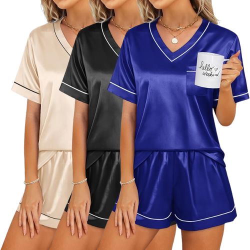 WIHOLL Silk Pajama Set! ๐ Soft satin 2-piece sleepwear with short sleeves, smooth and comfy lounge set perfect for relaxing and bedtime luxury ๐๐๐ธ