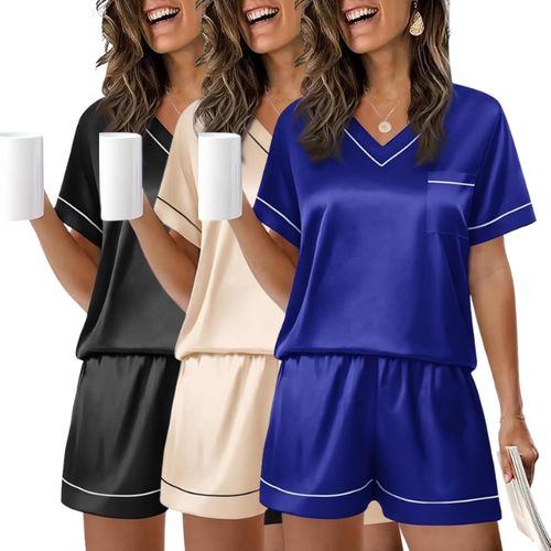 WIHOLL Silk Pajamas make lounging extra luxurious. 🌙 2-piece short-sleeve satin set soft comfortable sleepwear perfect for relaxing at home. 🛌💖