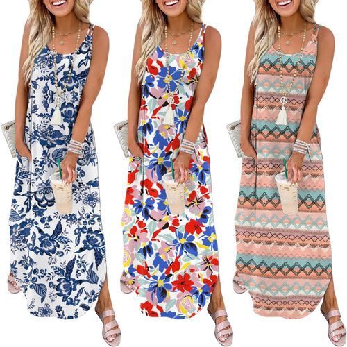 WIHOLL Summer Dresses Spaghetti Strap Maxi Dress ☀️ Flowy scoop neck, lightweight comfort, and functional pockets—perfect for travel, casual wear, and all-day summer style 👗