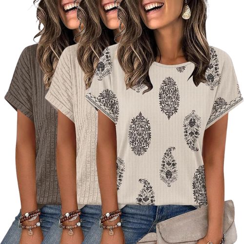 WIHOLL Textured Shirts your seasonal wardrobe with chic, effortless style.! 👚 This cap-sleeve top features a loose fit, textured fabric, and various trendy prints.!