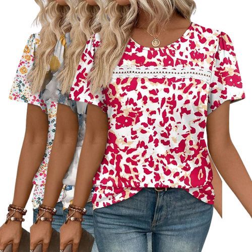 WIHOLL Tops 🌞💃 boho summer vibes with short sleeves and lace. Casual, beach-ready, perfect for vacations—sizes S-3XL 🏖️🌸.