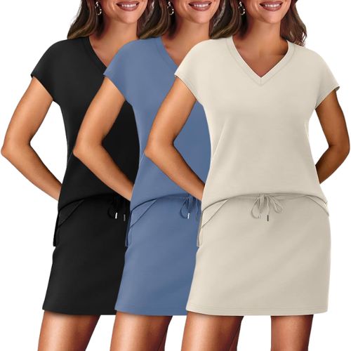 WIHOLL Two Piece Skirt Sets keep summer style effortless and chic ☀️👗Cap sleeve top, side slit skirt, perfect for travel, tennis, or lounging 💖