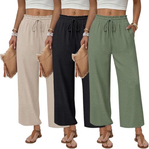 WIHOLL Wide Leg Palazzo Pants! 👖Flowy drawstring design, elastic waist with pockets, perfect for casual lounging and comfy everyday wear! 💖🏡