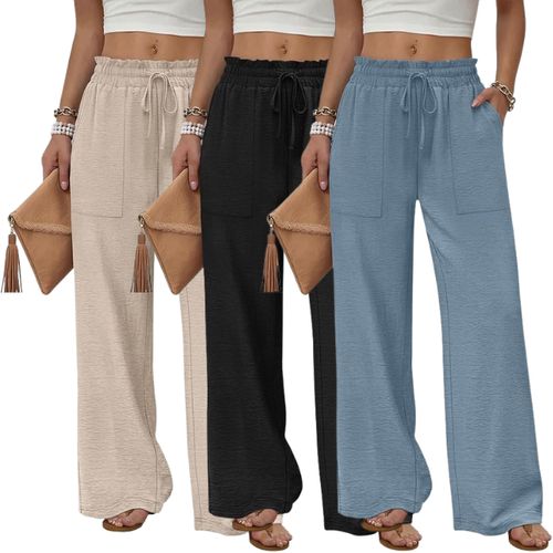 WIHOLL Wide Leg Pants! 👖 Loose drawstring fit with pockets, breathable and comfy design—perfect for work, beach vacations, and everyday summer outfits! ☀️💖🏖️