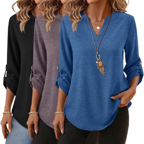 XIEERDUO 3/4 Length Sleeve Womens Tops elevate everyday business casual style. 👚 V-neck loose-fit side buttons perfect for office comfort wear. 💼🌸