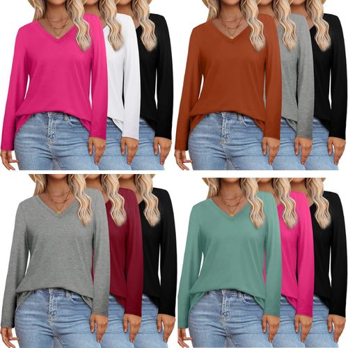 XIEERDUO Long Sleeve Shirts-Fall Tops! 🍂 This 3-pack features a V-neck, a comfortable loose fit, and a basic design, making them perfect t-shirts for fall. 👚