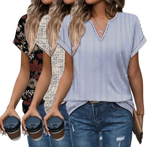 XIEERDUO Tops Dressy Casual a stylish V-neck rolled sleeve design. 👚 Lightweight, versatile, perfect for business casual or beach vacation outfits. ☀️🏖️