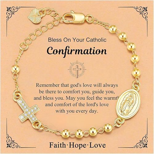 XUANPAI Gold Rosary Bracelet shines with 14K gold plating and Virgen de Guadalupe charm. ✝️ Dainty, adjustable, perfect for confirmation or first communion gifts. 🎁💖