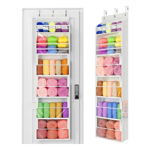 Yecaye Hanging Yarn Storage Organizer keeps your yarn neat, visible, and dust-free. Six zippered compartments, clear PVC front, and large-capacity design. 🧶📦