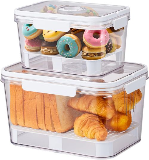 The cutest way to store bread & pastries! 💕 Seal in freshness with these YEZHEXI 2 Pieces Airtight Bread Boxes! 🥖