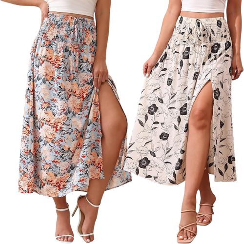YIYIHAOSHUNV Maxi Skirt πΈπ boho floral, high-waisted, flowy pleated A-line design. Perfect for beach days, summer outings, and stylish casual wear βοΈπ.