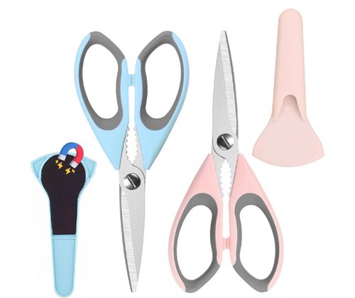 YLUIQDZL 2 Pack Kitchen Heavy Duty Scissors ✂️🍴 are perfect for every cooking task! Stainless steel, dishwasher-safe, and includes magnetic holder for easy storage (Blue & Pink) 💙💖