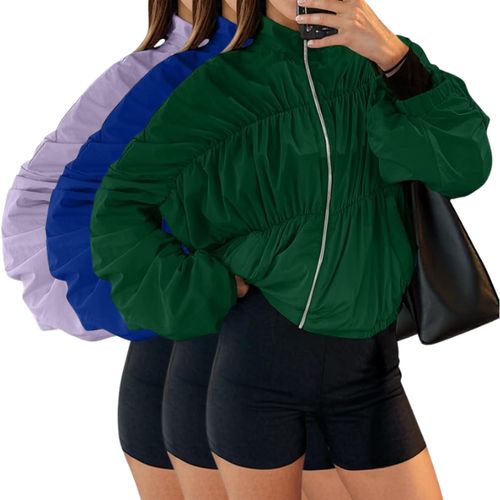 Yousify Lightweight Bomber Jacket brings casual cool to any look 🖤 Oversized fit, batwing sleeves, and zip-up design with pockets .