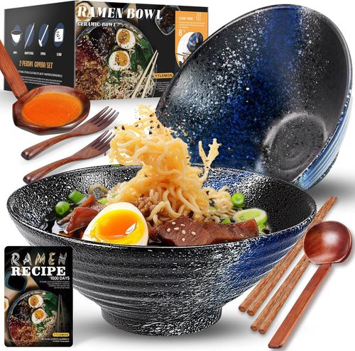 YTLEMON 8-Inch Ceramic Ramen Bowl Set 🍜 perfect for ramen, salad, or pasta. Microwave & dishwasher safe, ideal gift for men & women who love stylish dining. 🎁