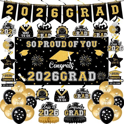 Yunfan 2026 Graduation Decorations Set! 🎓 Turn your celebration into a black & gold dream— balloons, backdrop, and all the glam vibes! 🎉