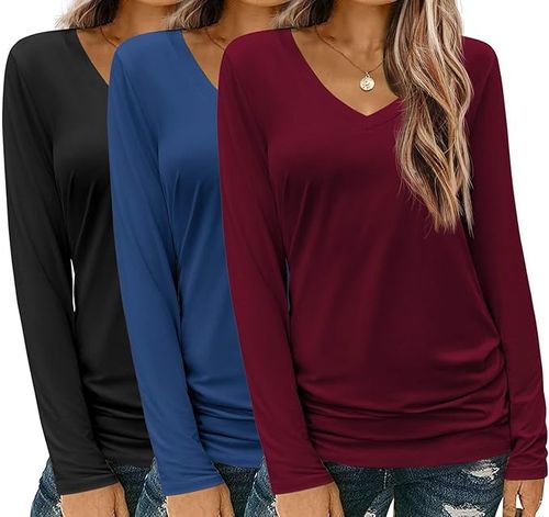 Zeagoo 3 Pack V-Neck Long Sleeve T-Shirts 👚 Soft solid basic tees perfect for casual wear and fall outfits. Comfortable fit in sizes S–XXL, great for layering or daily style 🍂.