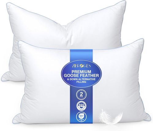zibroges Feather Pillows Queen Size bring hotel-level softness and cloudlike comfort to your bed 😴. Fluffy support, cotton cover, and medium softness for all sleepers 🛏️💤.