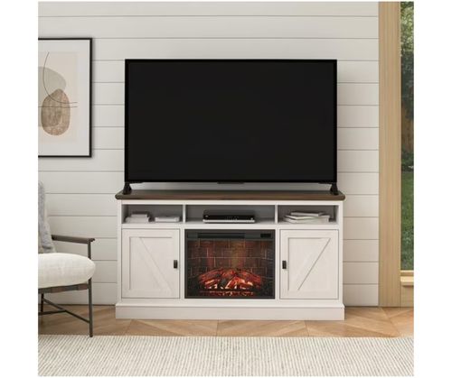 Style meets warmth! 📺 Keep your room cozy and modern with this Ashton Lane Electric Fireplace TV Stand. 🔥