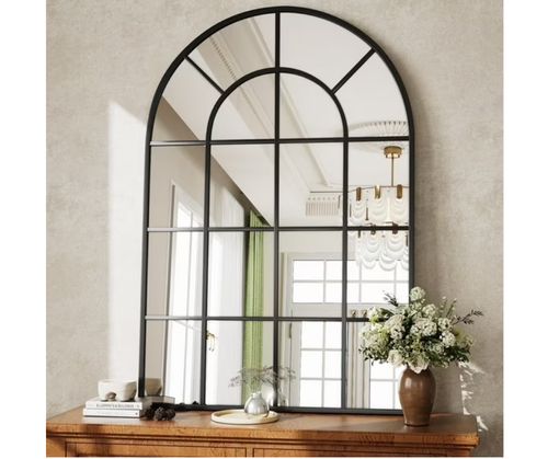 Transform your space! 🪞 BEAUTYPEAK 36"x24" Arched Windowpane Mirror adds style & light. Perfect wall upgrade! 🏡