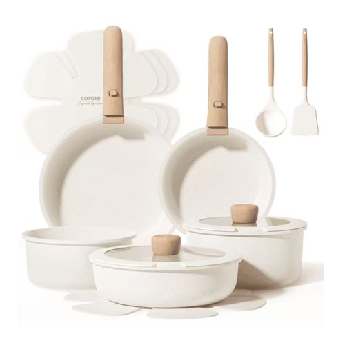 Carote 15 Pcs Nonstick Cookware Set makes cooking easy and stylish 🍳. Granite non-stick, removable handles, oven-safe, and induction compatible for versatile use 👩🍳🏠.