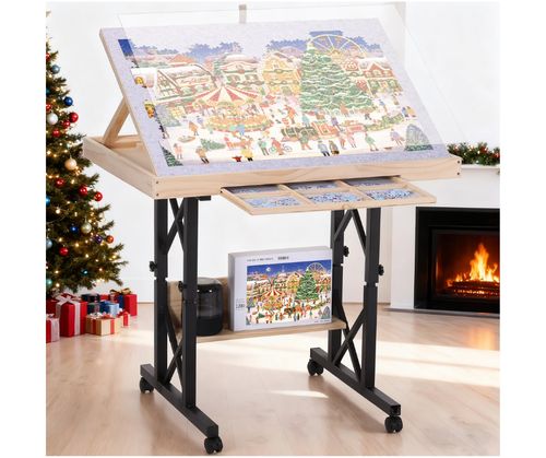 FUNTOK 1500-Piece Puzzle Table! 🧩 Adjustable angle, drawers for all pieces, and sturdy wheels make puzzling a breeze. 🎯