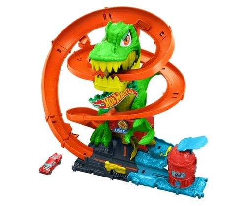Hot Wheels T-Rex Battle Set! 🚗 Race, crash & defeat the dino! Kids will love this action-packed playset. 💥