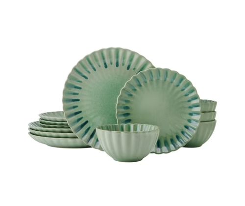 Elegant. Durable. Everyday perfect. 💚 Meet your new favorite Pfaltzgraff Lucinda Green 12-Piece Set! 🍽️