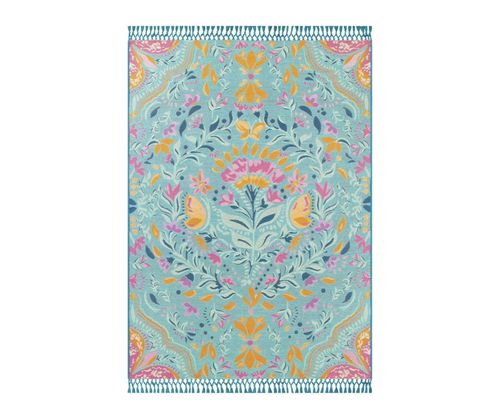 Pioneer Woman Folk Geo Rug! 😍 Brings bold turquoise color and cozy vibes to patios, porches, and backyard hangouts! 🌞