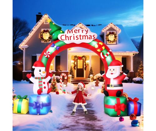 Transform your yard this Christmas! 🎄 Qunler 10FT Inflatable Archway with Santa & Snowman – lights up your holiday! 🎅