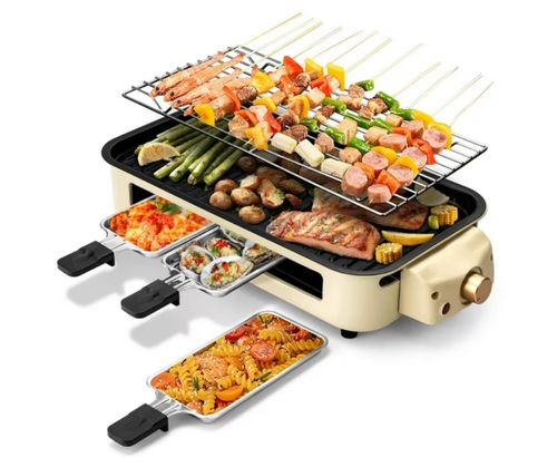 SUSTEAS 1500W Indoor Electric Smokeless Grill! 🥩 Non-stick surface, 3 mini raclette pans, easy to clean! 😍