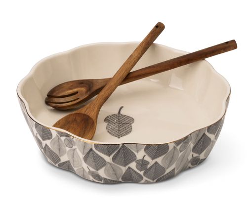 Serving just got prettier! 😍 Thyme & Table 3-Piece Bowl Set with wooden spoon & fork—perfect for salads, snacks, and dinner parties! 🌿